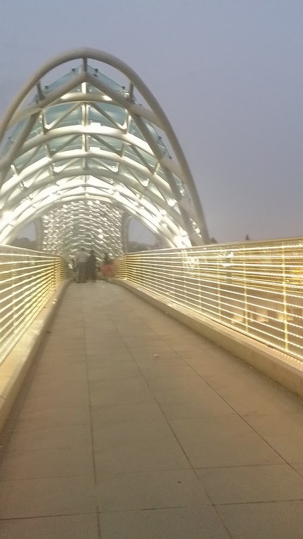 Dann über die „Bridge of Peace“ eine supermoderne Brücke mit eindrucksvollem LED Lichtspiel bei Nacht. Sie soll eigentlich an einen Wal oder Fisch erinnern, wird aber im Volksmund ob seiner geschwungenen Form „Always Ultra“ genannt (nach einem Frauenhygiene Artikel ;O) ) Scheinbar haben nicht nur die Berliner eine etwas lockere Art ihre Wahrzeichen zu benennen (so wie “ Waschtrommel“ für Angie’s Palace).