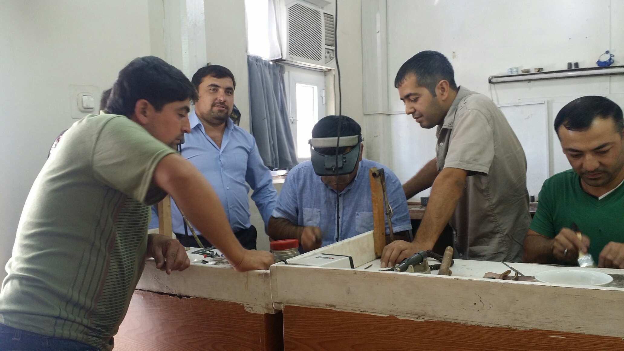 Nach etwas suchen landeten wir im ersten Stock über dem Basar bei Meister Shavkat und seiner Truppe.