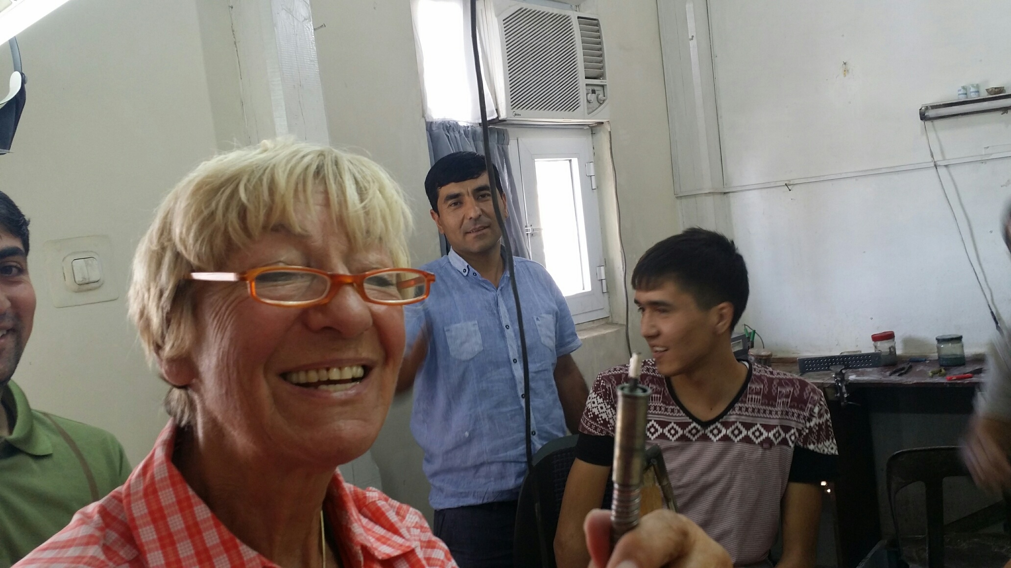 Nach den üblichen Verständigungshürden, war der Plan klar und feinstes Bucharasilber wurde mit feiner Flamme auf die zu dünne Welle geschmolzen! (Gold fanden wir dann doch zu überkandidelt und mit unedleren Metallen beschäftigen sich die Meister dort nicht ;O) )
