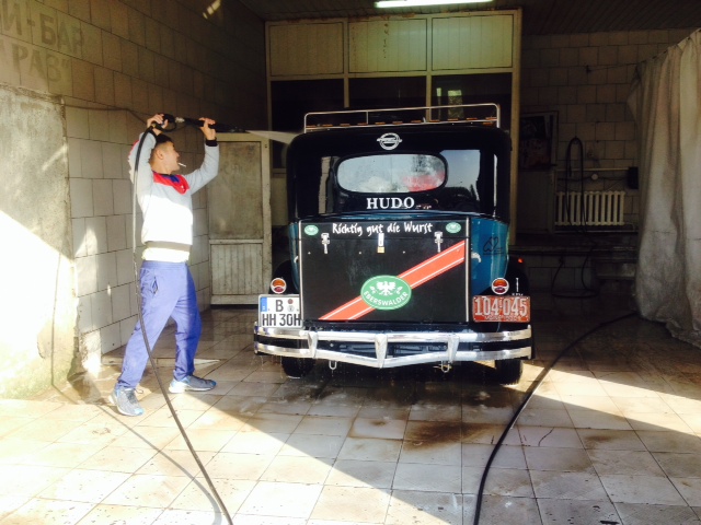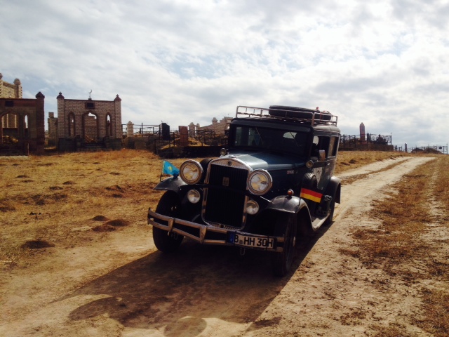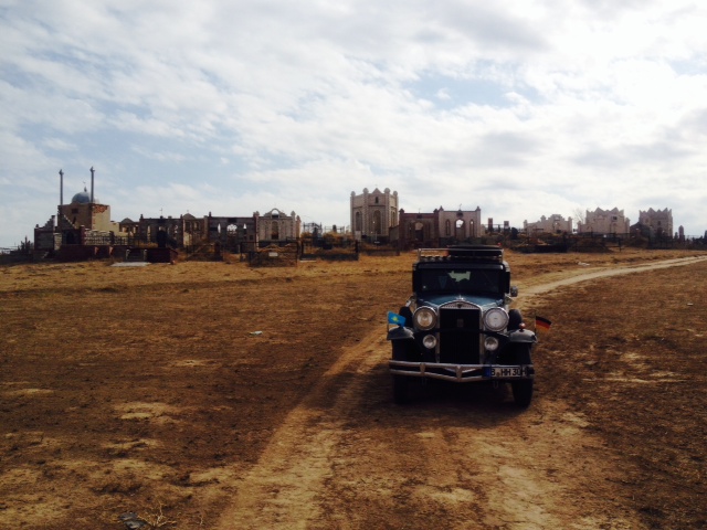 Tankstelle aus Deutschland importiertIrgendwo hinter Korday, 2km von der Autobahn ab, steht diese Deutsche Tankstelle. Nur mit 0,60 Cent der Liter. Und in den 80 Liter Tank gehen 81 rein. Das war ganz schön knapp.Die super Straße nach Almaty zieht sich hoch, sodaß es in meinen Ohren knackt.Hudo sagt auch einmal Puff, das heißt, ich bin 84 Jahre alt.Auf der Strecke waren über 10km schön beschnittene Bäume. Manche schaffen es und manche nicht.Von der Straße aus sehe ich einen alten Friedhof. Da muß ich hoch. Mal von der Straße ab.Der Friedhof wird wohl nicht mehr besucht.Endlich mal keine Menschen,die ständig fragen, was ist das für eine Marke, wo bist Du her, wie heißt Du, ich heiße ……..Auf der rechten Seite ist die ganze Zeit eine riesen Bergkette, welches Gebirge?Einfahrt nach AlmatyHudo vorher und……..Hudo nachher. Schaumbad mit Kopfwäsche und UnterbodenIch hätte jetzt auch gerne eine Dusche,aber wie findet man ein kleines Hotel?Mitten in der Stadt zwei Mädchen mit EselAuch sie gucken Hudo an, aber sie reden nicht,lächeln mich aber mit ihren schönen dunklen Augen anBesonderes Interesse finden die Menschen an meinen Familien Fotos am ArmaturenbrettSie wollen wissen, wer mein Mann ist und wo er denn nun ist. Bei den Enkelkindern, schauen sie etwas verwundert, bis ich Ihnen klar gemacht habe,Kinder der KinderIm Hudo müßte mal aufgeräumt werden .Ich habe zwar ein Verzeichnis, aber das stimmt nicht mehrSicherheitshalber, damit ich auch zurück findeHeute scheint wieder die Sonne. Es ist Sonntag und wie überall auf der Welt gibt es den Markt. Sie winkt mich ran,sie möchte das Foto sehenSie mag ihre GoldzähneFeierabendIm Fußraum ist die Reservebatterie, womit ich mit dem Umwandler auch schnell alle Geräte wieder laden kannUnd das ist die Audi Lichtmaschine von Iris meinem Helden Dr. IRIS und Bulam aus Shymkent, die auf ihr Land stolz sind und ich Kasastan immer in guter Erinnerung behalten werde