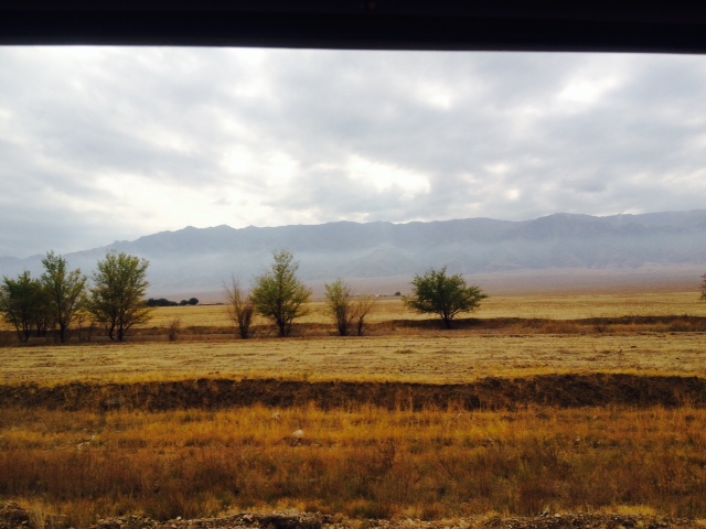 die Bergkette, die sie auf der Fahrt nach Alma Ata zu Ihrer rechten sahen, sind die westlichen Ausläufer des TIANSHAN-Gebirges, bestehend aus dem KIRGISISCHEN- Gebirge im Südwesten und dem KUNGEJ-Gebirge im Süden von Alma Ata.