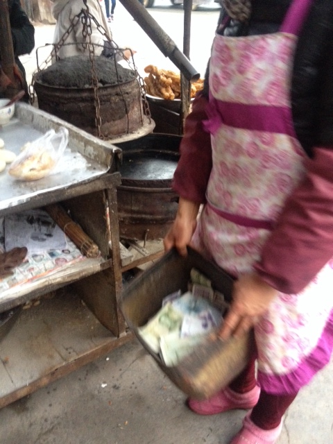 Die Kasse für das frische warme Brot an der Straße