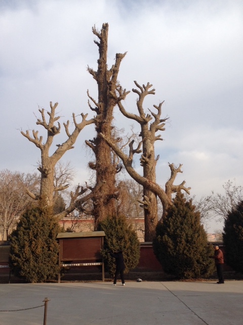 Drei uralte wunderschöne Bäume? Denkste, nur der mittlere ist echt, die beiden anderen sind aus Plastik oder Zement.