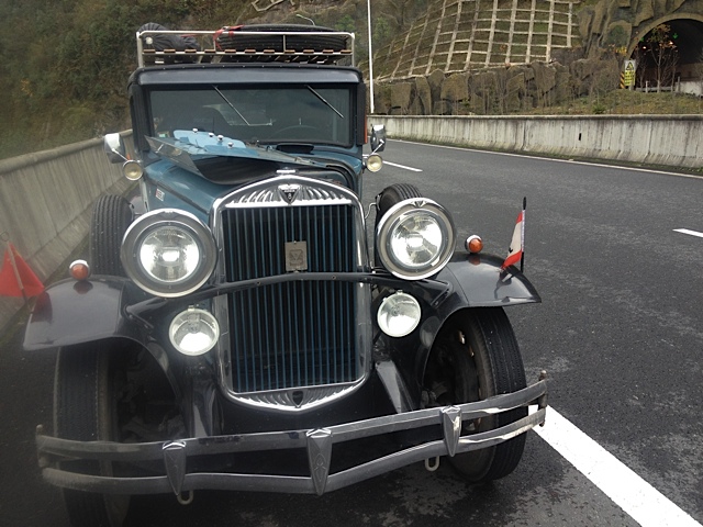 Als die Bauarbeiten zu Ende waren, haben wir das Ganze wieder umgedreht. Da Hudo bei 3,7% Anstieg schwitzt habe ich das Nummernschild wieder abgeschraubt und fahre mit offener Kühlerklappe. Alle 100 km säuft Hudo ca. 2 Ltr.