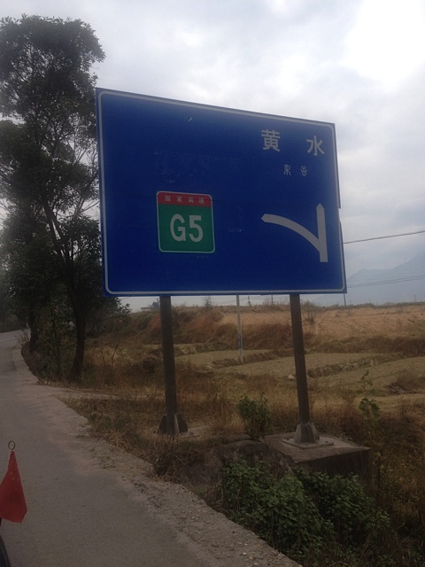 Ab auf die G5, bitte beachten, oben Chinesisch, darunter Landessprache. Es gibt 56 Minoritäten in China.