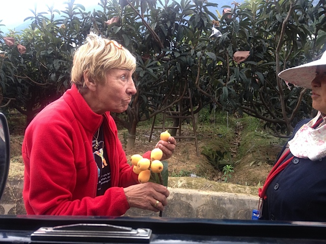 Hallo, das sind Mispeln, gibt es in D auch zu kaufen aus Spanien etc. Viele Grüße, gute Reise noch, schöne Weihnachten und ein gutes neues Jahr!