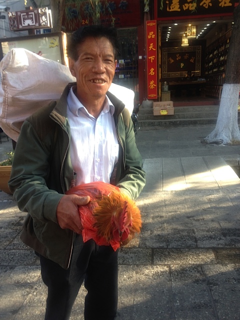 Entweder hat er das Huhn gekauft oder er will es verkaufen …..