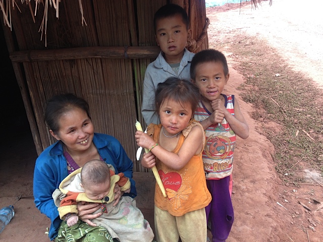 Überall Kinder, die sich über die Kugelschreiber freuen.