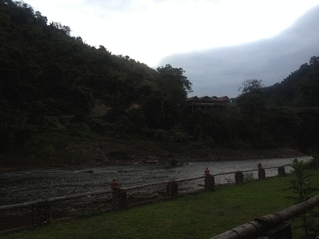 Die Stadt in der wir eigentlich übernachten wollten, hat sowas wie Bundesjugendspiel und da hat die Regierung alle Hotels blockiert. Wir müßen 28 km weiter fahren und morgen wieder zurück. Aber hier finden wir Bungalows, traumhaft am Fluß.