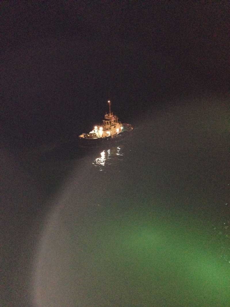 Pilotenschiff bei Nacht mit unserem Scheinwerfer