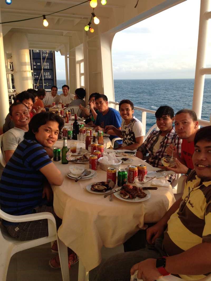 Grillparty mit der Mannschaft. Alles junge Philippinos.