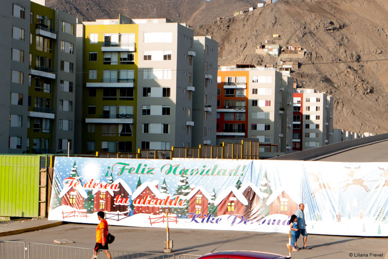 Weihnachtszeit ist nun endgültig vorbei auch hier in Lima. An dieser Straßenbanderole sieht man wie die Limeños sich die Weihnachtszeit vorstellen…