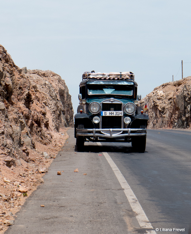 Tatsächlich war das jetzt gerade erst – 14 Jahre nachdem wir unsere Reise angefangen haben. Zum ersten Mal hatten wir ein großes Problem mit dem Motor, aber auch das konnten wir dank der Hilfe von jemand lösen, der einige Oldtimer besitzt. Wir mussten den gesamten Motor ausbauen und die Reparatur hat zwei Monate gedauert. Sonst hatten wir mal kleinere Probleme mit den Holzfelgen oder der Hinterachse. Allerdings mussten wir schon am ersten Tag nach 45 km wegen einer Holzfelge in die Werkstatt.“