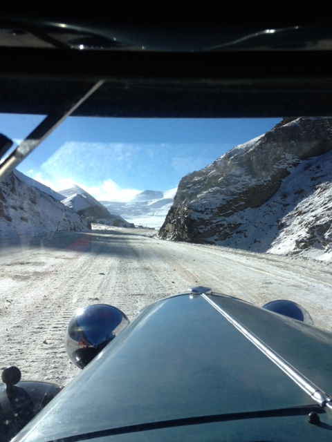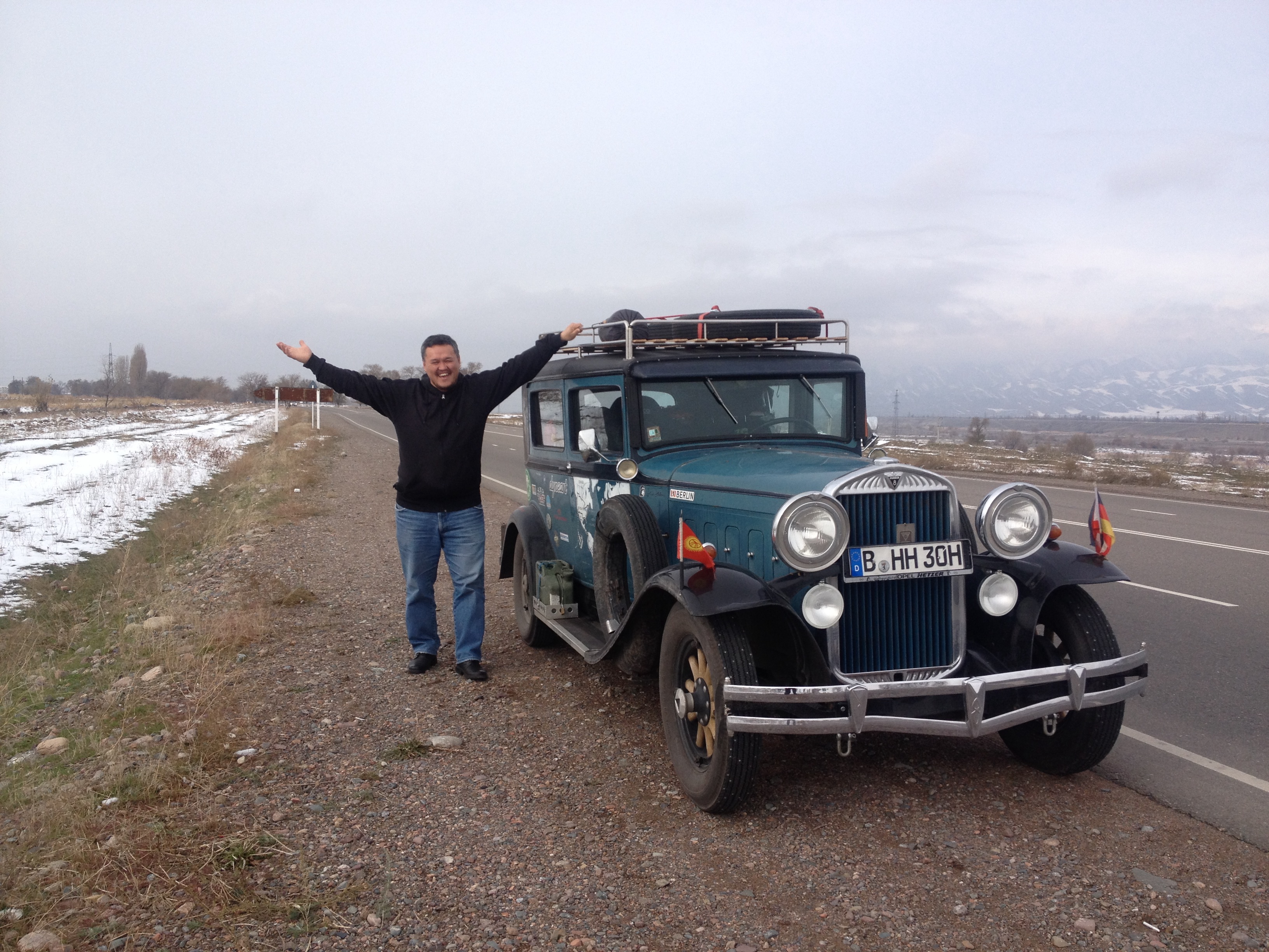 Eis ist Dienstag, der 11. Novmeber 2014. Die Spikes sind gut investiert.Es geht langsam steiler BergaufHudo schafft es nicht und wird aufgeladen. Die Grenze macht zu und wir müssen uns beeilen.Im LKW ist es warm, aber Hudo friertEs wird schon dunkel, hoffentlich hat die Grenze noch aufDer erste Grenzposten und wir dürfen noch weiter fahrenWeiter Richtung Torugart PassGrenzpolizeiWir geben Gas!Die Grenze ist geschloßen.Hudo wird abgeladen. Morgen früh um 9 Uhr wird wieder geöffnetHudo darf in der Sicherheitszone übernachten, springt aber nicht mehr an.Ich marschiere mit allen was warm ist und der Batterie ca. einen Km zurück in eine Hütte. Dort kann ich übernachten und es gibt auch Reis und Brot. Eine junge Frau kocht für die Bauarbeiter.Ich spiele noch ein bischen mit der süßen Kleinen, habe riesige Kopfschmerzen und habe Atemnot .Dahinten rechts habe ich überlebt und links haben sich über Nacht ca. 50 LKWs angestellt.Im Hudo sind 26 Grad Minus.Das war das letzte Foto, das Handy ist scheinbar kaputt . Es lässt sich nicht mehr aufladenDer Torugart Pass ist bezwungen und am nächsten Tag ist auch das Handy wieder aufgetaut. Mr. Wang, mein Guide für die nächsten 4 Wochen hat mich abgeholt und wir sind 160 km schnell nach Kashgar gefahren, denn das muß man schaffen zum Zoll an demselben Tag. Mr. Wang ist seit 30 Jahren Reiseführer und hat sehr viel Erfahrung und ist auch noch sympatisch.Die Kontrollen laufen problemlos und schnell ab. Da hat China Tours, Hamburg einen guten Job gemacht und einen Mann mit Erfahrung als Partner. Er ist aus Urumqi.Die Chinesische Fahne wird gegen die Kirgisische ausgewechselt. Hudo hängt seine Fahne immer in den Wind.Auch die Chinesen haben an Hudo Interesse .Ist doch ganz einfach zu lesen. Irgendetwas passiert links.Während ich auf meinen Chinesischen Führerschein und das Nummernschild warte, mache ich Frühstückspause und lasse die Trinkwasserflasche auftauen.da ist ein Eisklotz drin.Der Buddy Bär braucht auch Sonne und so eine Eberswalder Wurst hätte ich zur Belohnung jetzt gerne, aber ich muß mich mit alten russischen Kecksen zufrieden geben.Heute in Kashgar sind in Hudo über 20 Grad plus, da muß ich an gestern denken. Von einem Tag zum nächsten. Daß das dem Körper gar nichts ausmacht. Übrigens, die Kopfschmerzen sind wie weggeblasen.Ich muß mich kneifen, wir sind in China und in einer andren Welt. Natürlich Motorräder und jede Menge Motoroller, elektrisch.Auf dem Weg nach Aksu geht das Tja nshan Gebirge auf der linken Seite weiter, 1400km ist es in China und 800 Km in Kirgistan lang.rechts ist die Eisenbahn und dahinter die Wüste Gobi.Aksu, nichts besonderes, eine halbe Mio Menschen.Überall grelle bunte Beleuchtung.Andreas Boehlke, das würde Dir nicht gefallen.Ist doch ganz einfach zu lesen, oder?Da sind wir heute in Kurle eingetroffen. 500km gefahren und nichts gesehen.Die Sonne geht in China unter und ich suche WiFi.Bunt, nach Cinesischem Geschmack. Die Menschen tanzen auf einem Platz, mongolisch.