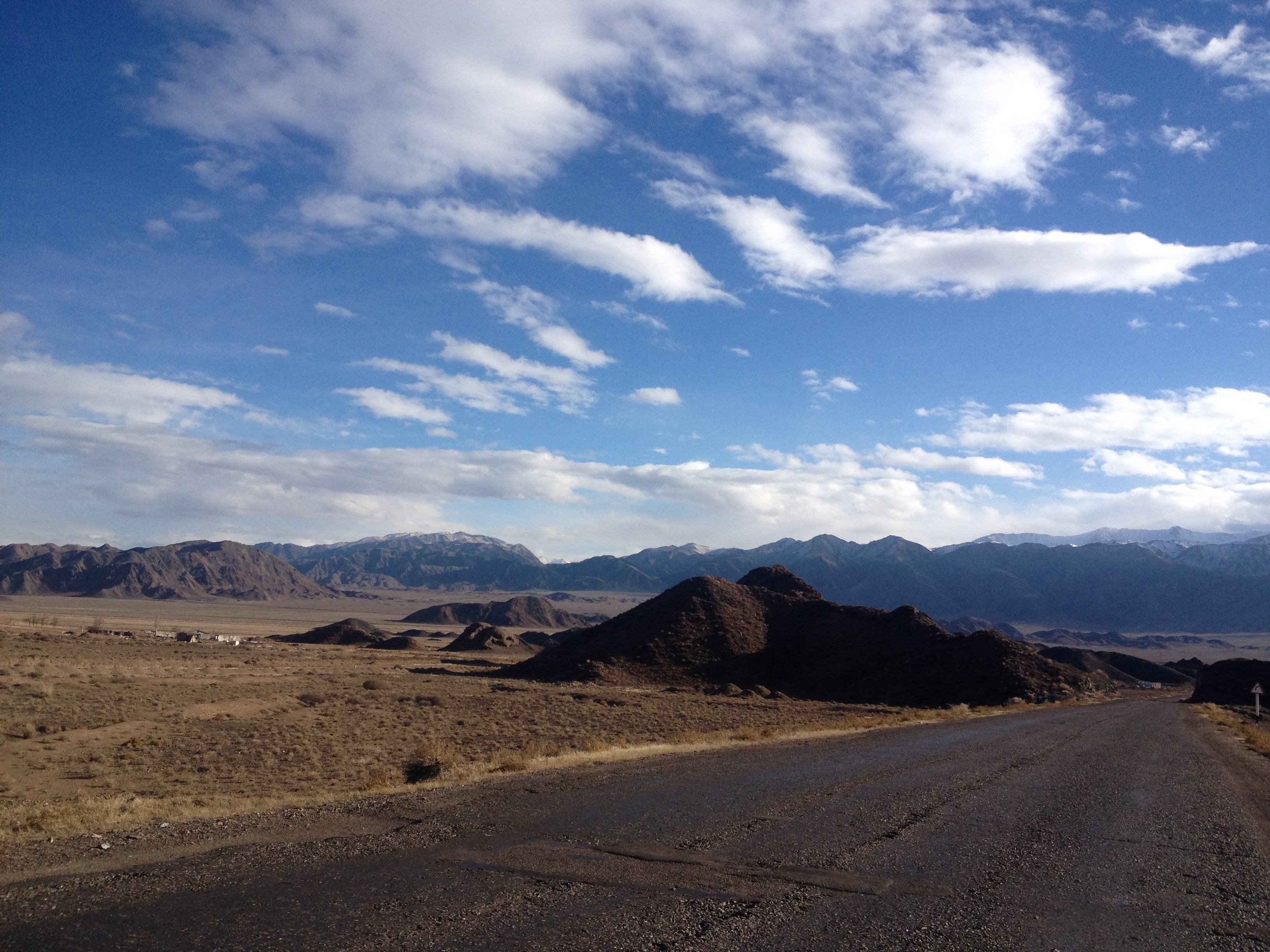 Asis, mein Beifahrer hat sich Urlaub genommen und freut sich auf die Strecke und die Berge und den lakeBerge ringsherumOrtseingang von BalaykychyHUDO fährt langsam brav die Berge hoch und runterVon wegen Schnee und minus Grade, wir haben einen herrlichen warmen Tag erwischt.Trocken so weit man sehen kann.An dem großen „Fischersmann “ See, er ist salzigDa kommt doch noch Schnee und ein eiskalter WindDie Straße ist noch gut und trocken, wir sind ja auch noch nicht auf dem kleinen Pass DolonDer See hat keinen Namen , da haben wir ihn Heidi See getauf. Später erfahren wir, es ist kein See, sondern ein Wasserreservat.Die Sonne geht unter, Zeit eine Herberge zu suchen.Asis schönster Tag in seinem Leben und dann noch ein Zimmer für 700 Som(10,–E).Er will nämlich selbst bezahlen.Dinner for two, für 300 Som, das sind 4,20 Euro. Da kann man nicht meckern. (das höchste Lob, was ein Berliner zu vergeben hat.)
