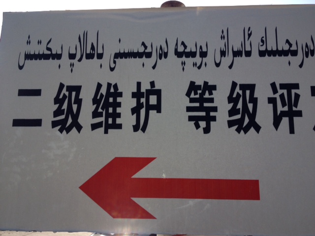 Ab auf die G5, bitte beachten, oben Chinesisch, darunter Landessprache. Es gibt 56 Minoritäten in China.