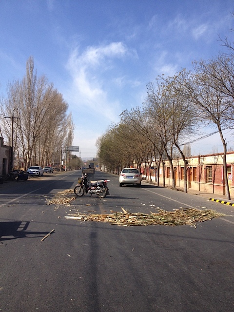 So wird ein Unfall in China auf dem Lande abgesichert, alle fahren drumrum, wer weiß wann die Polizei kommt.